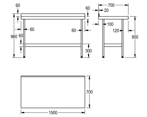 Magnum wall tables ideal to sit alongside the Magnum range of catering sinks. The mini wall tables are manufactured from 1.2 mm thick, grade 1.4301 (304) stainless steel with a satin polish finish. The stainless steel underframe and shelf is supplied flat pack with easy to read assembly instructions. Each leg is fitted with an adjustable foot (-20, +10 mm) with a working height of 900 mm.